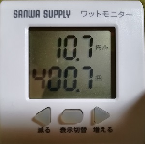 と同時に、今冬もワットモニターでの計測を開始しました。
