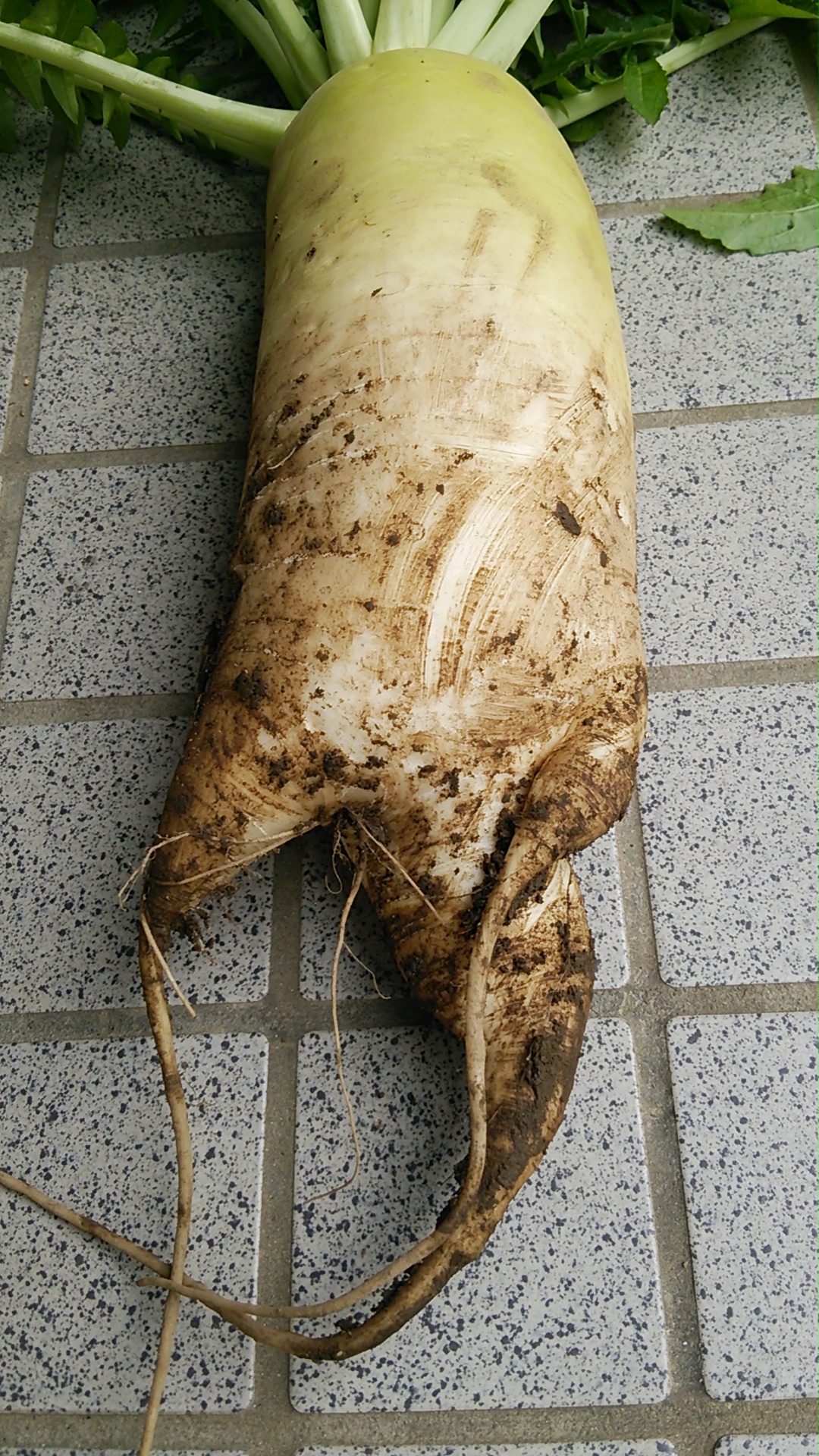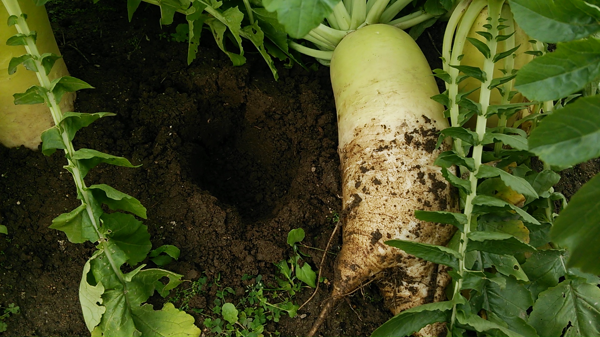 そして、太さが萎まず地中まで続いた大根に育ってました。