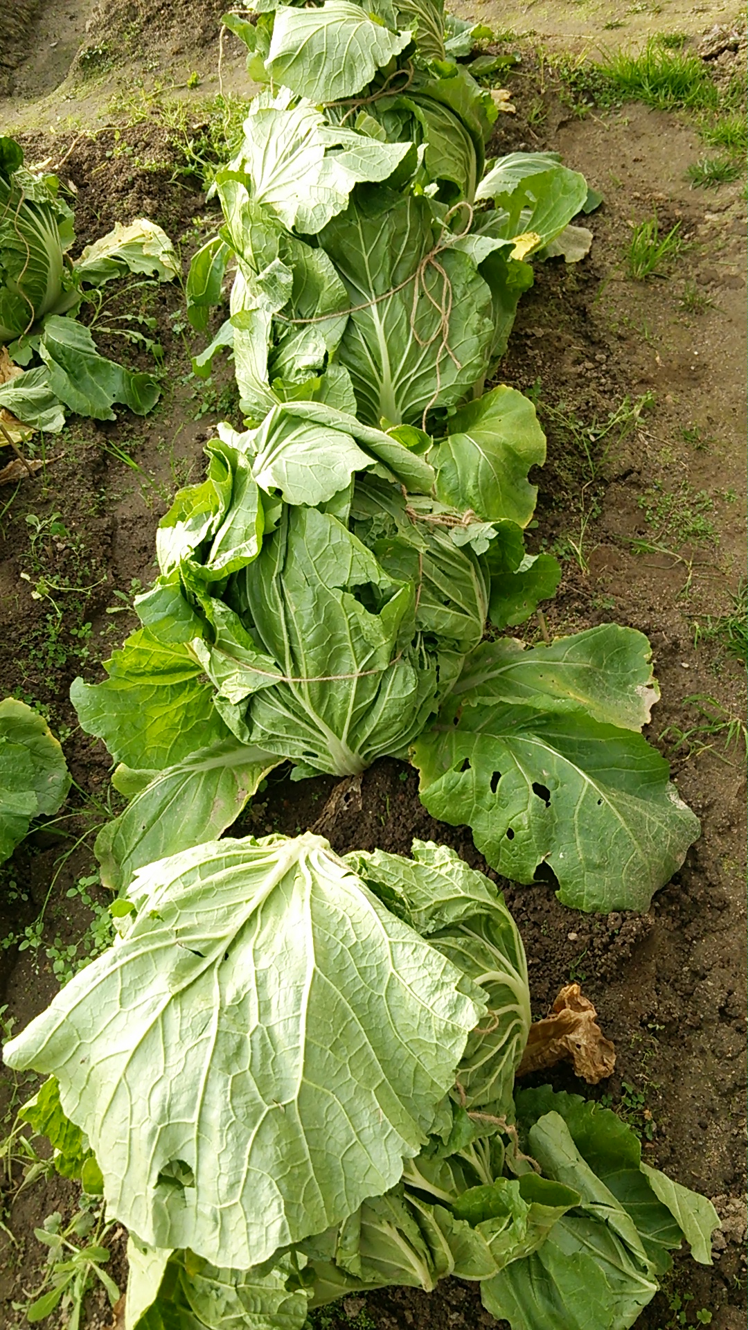 寒さ対策として外葉でくるんで紐で結ぶと、寒さにやられず保存も効くらしいので 巻いて来ました。