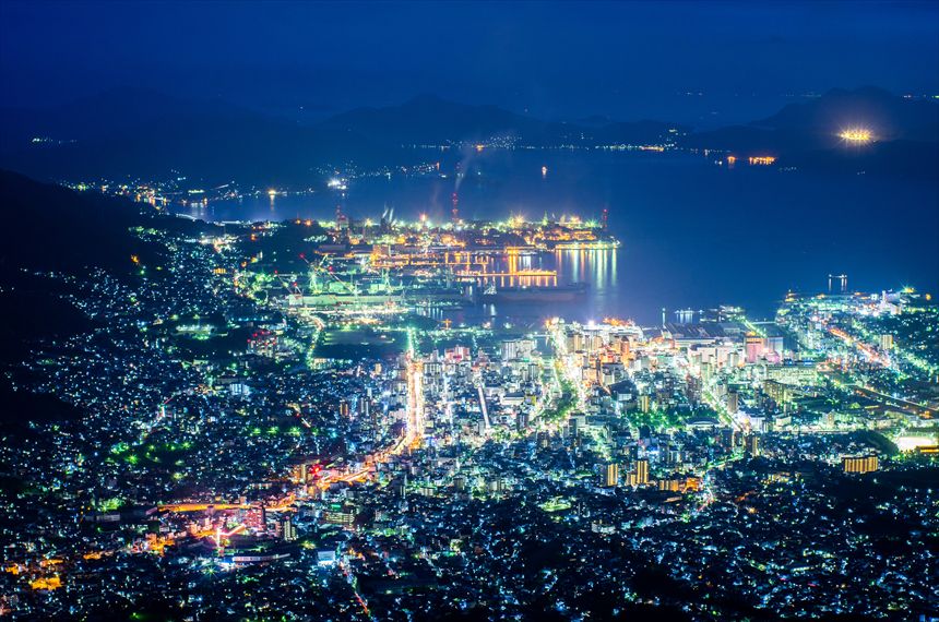 山の頂上付近に展望台があり、このような夜景を見ることができます。 - 音戸の瀬戸公園