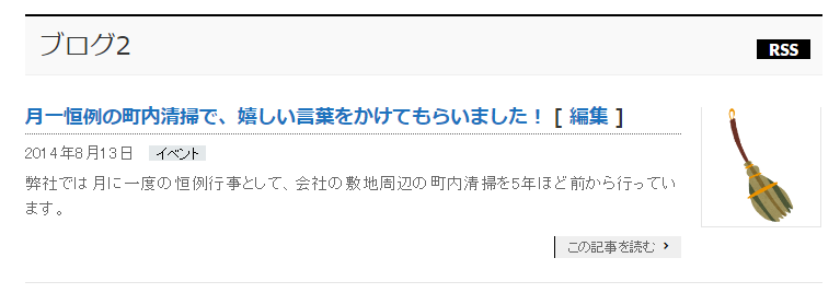 BizVektorには、トップページにブログの新着載せたり、外部RSSから新着載せるウィジェットが標準で搭載されてるので試してみる。