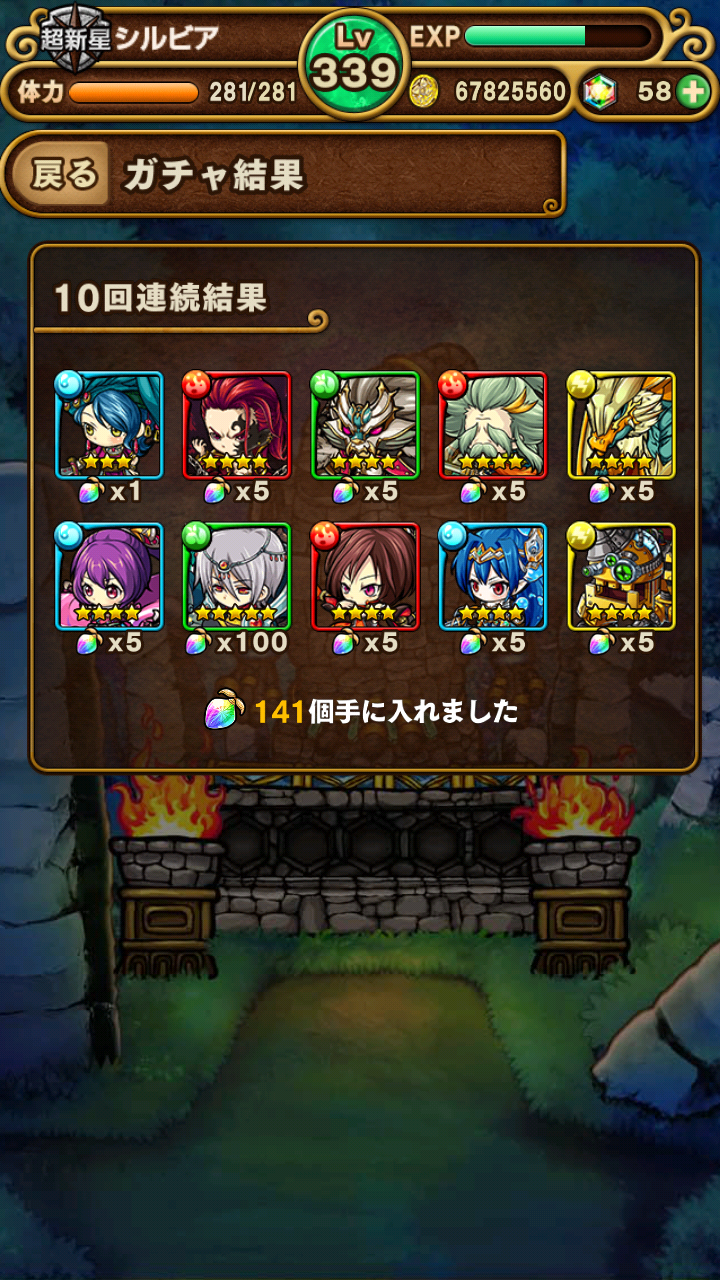 気が付くと虹結晶100個超えてたし、状態異常モンスターも欲しいってことで 10連1回だけ!挑戦してみました。
