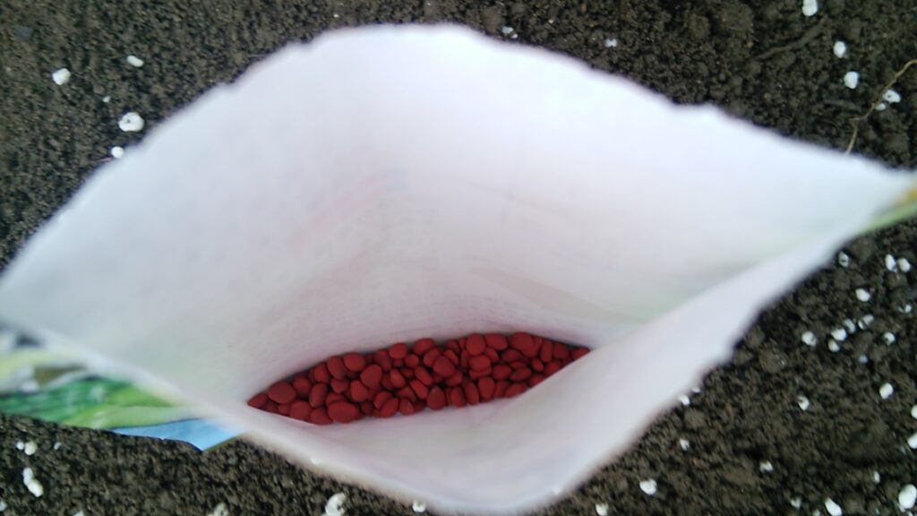 もう、植えようとした段階で 土に元肥を混ぜ忘れた事に気づいたので 上からまぶしておきました。