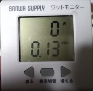 ゲームのプレイは数時間程度ですが、ワットモニターの計測では30時間使用したことになっています。
