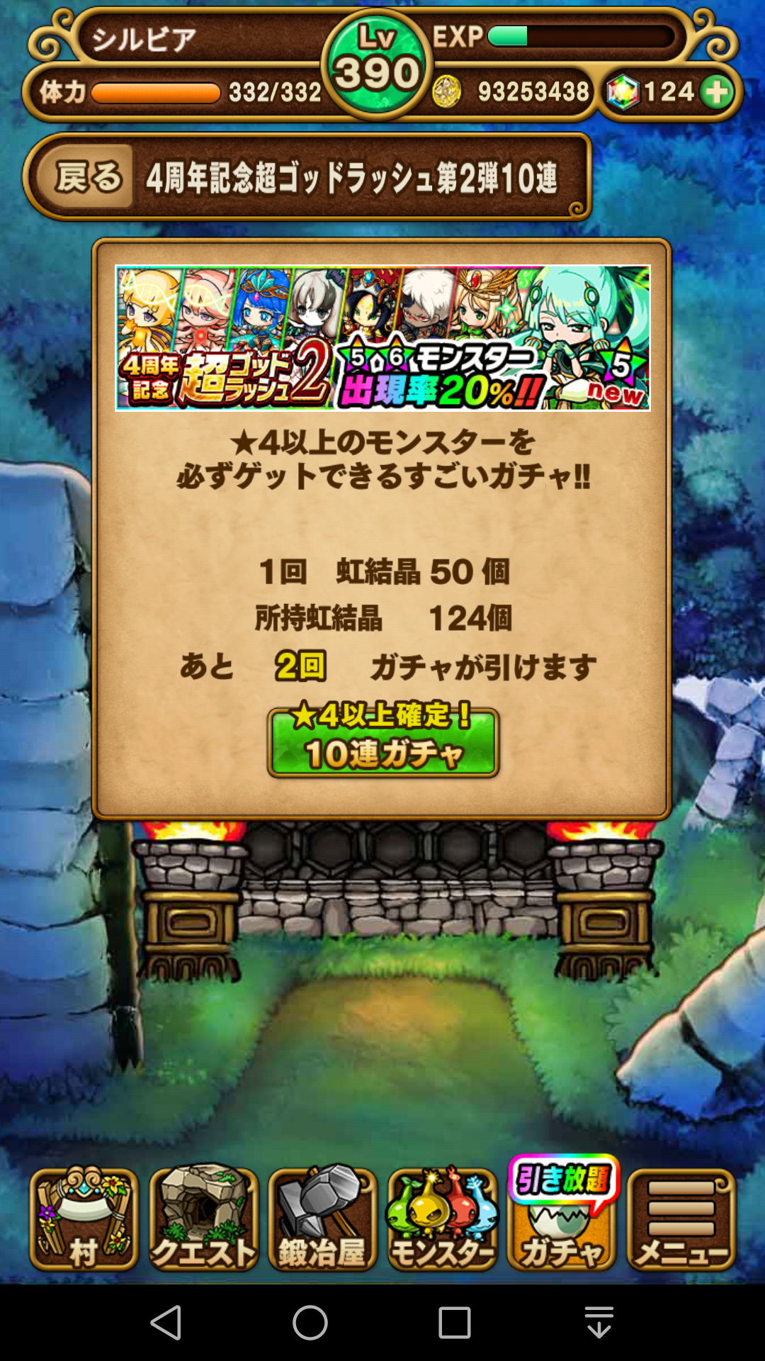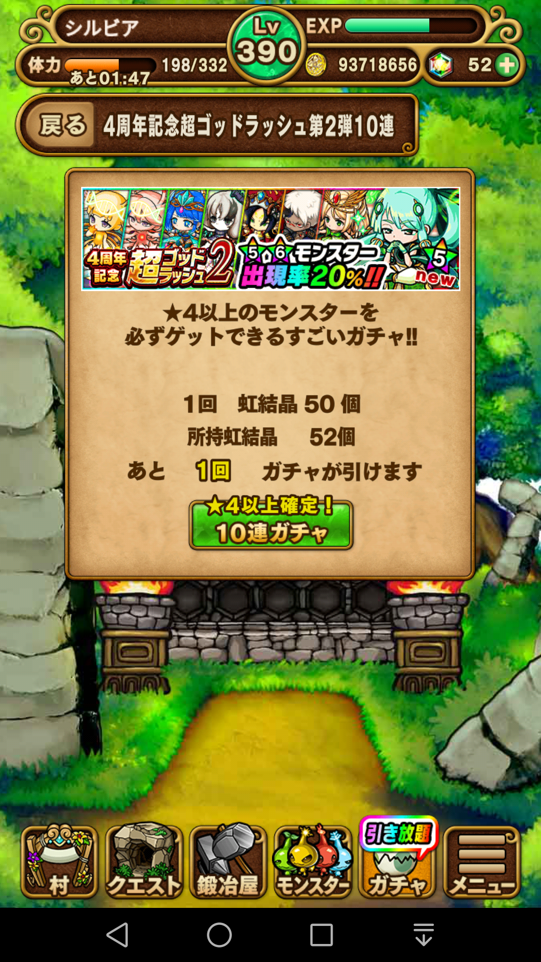 虹結晶が足りないので、大急ぎでタワーで虹結晶回収したり、補償などもふくめて50個までなんとか貯めて挑戦。