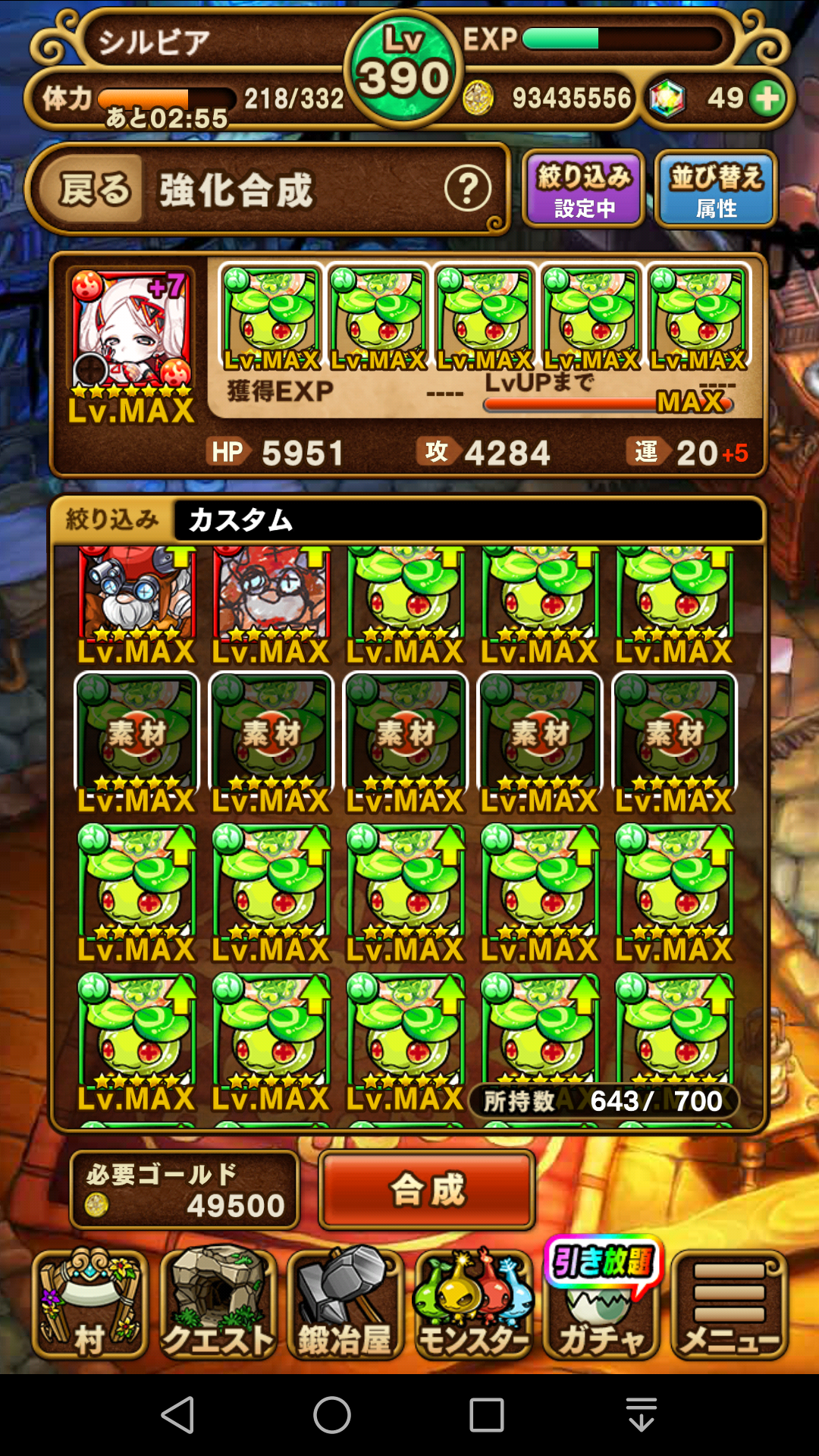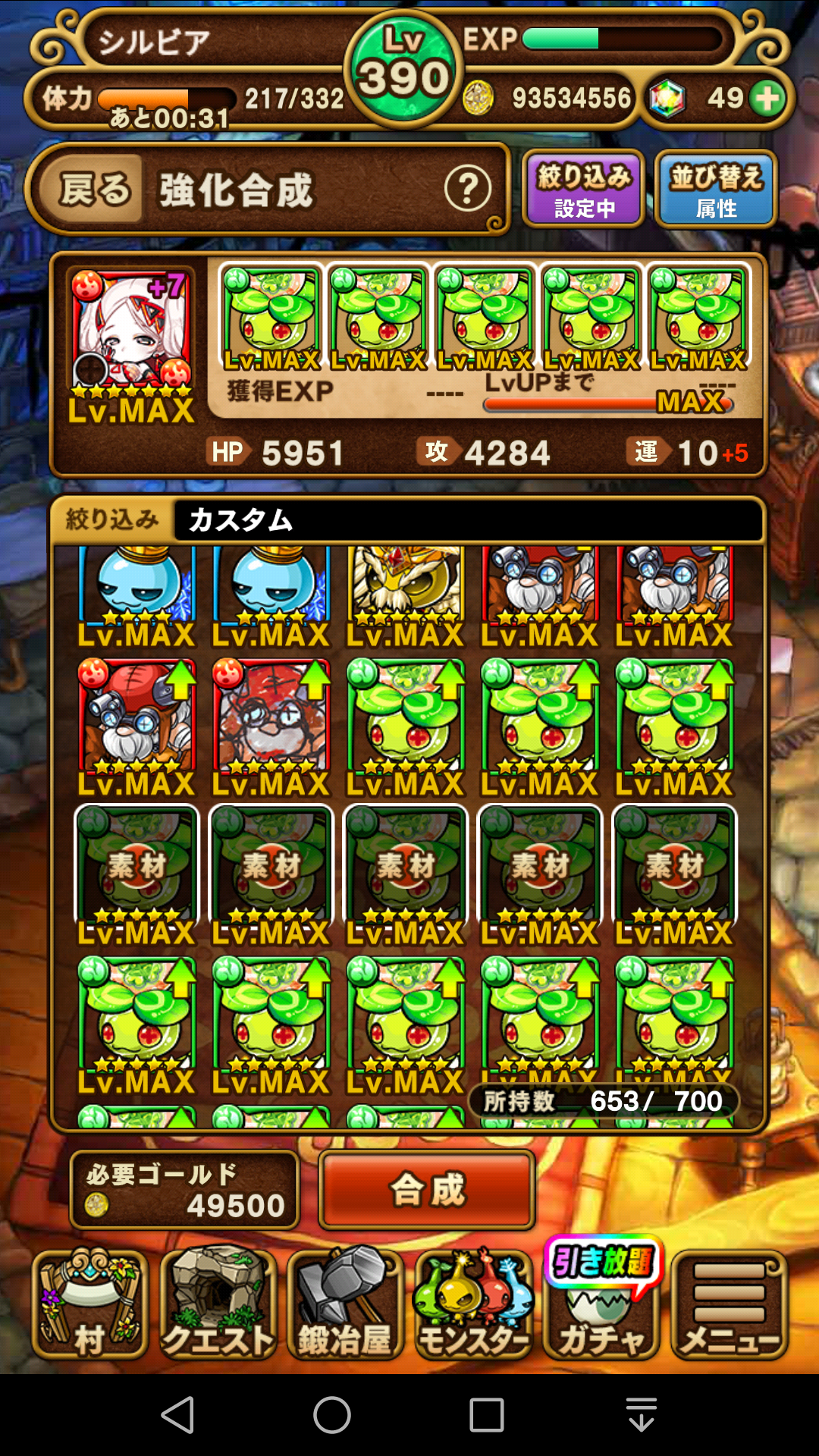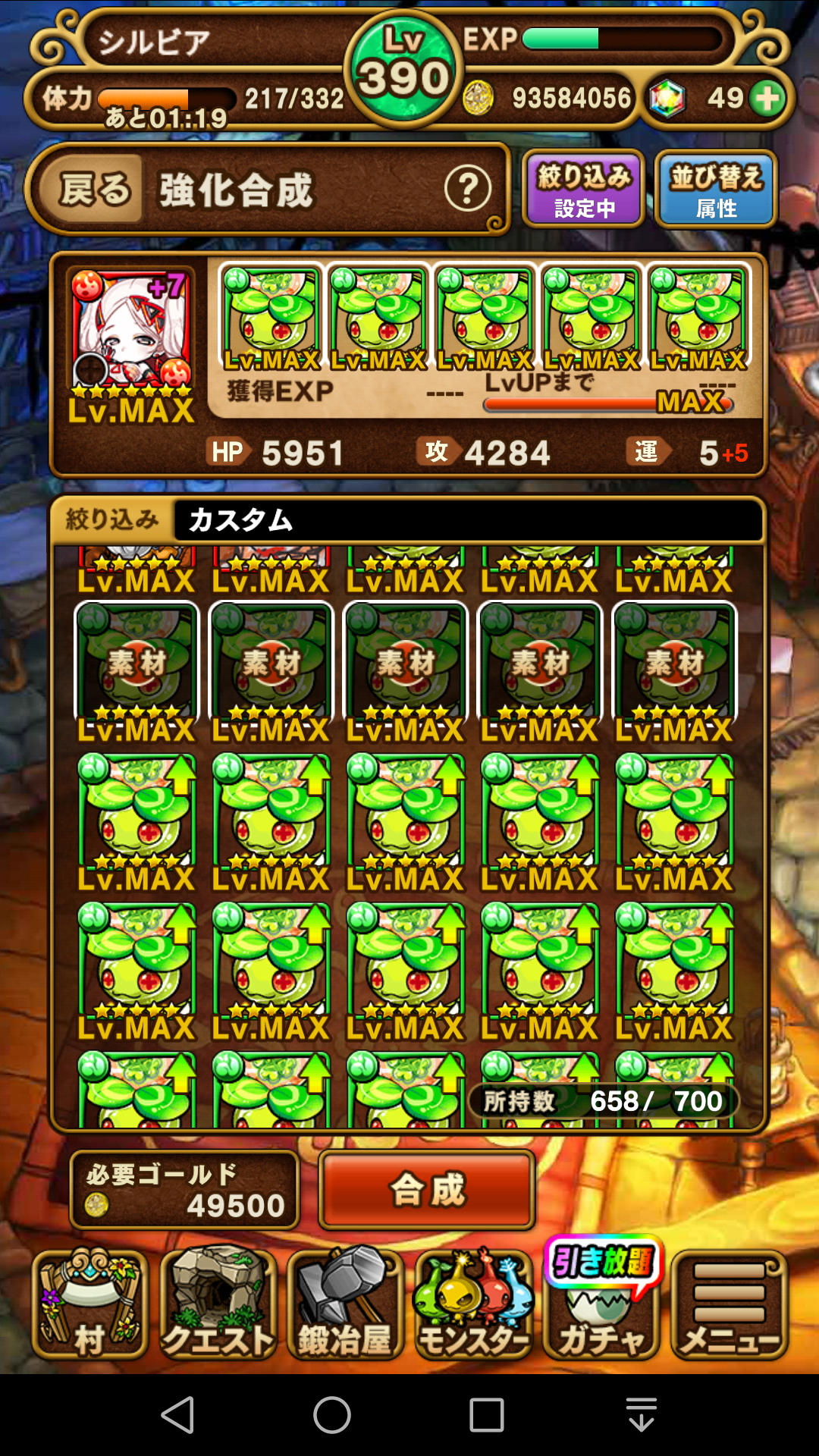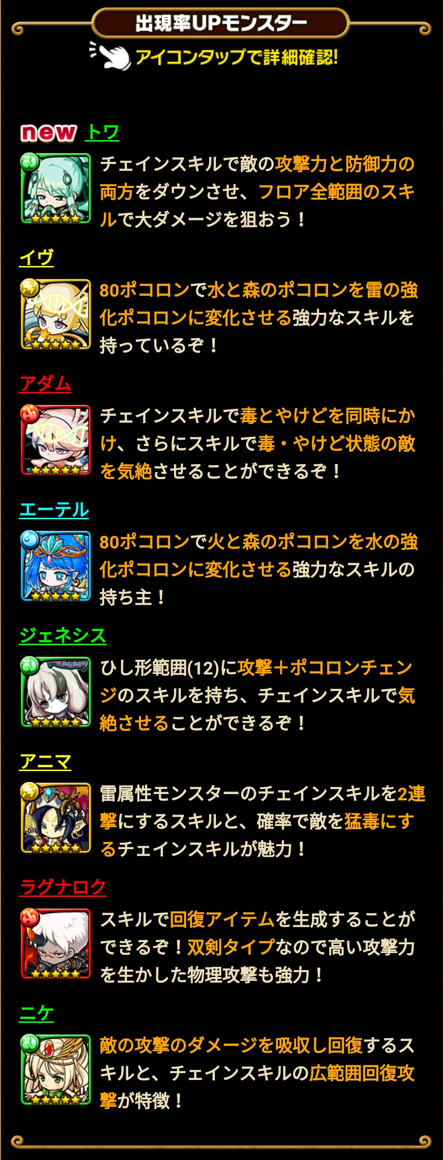 ニーズヘッグ…ダメージ吸収回復スキルを持っているので、性能としてはソコソコだと思うんですがね。チェインスキルが「8」と重たいのが難点。以前から持っていますが、コレも使ったことのないモンスターです。