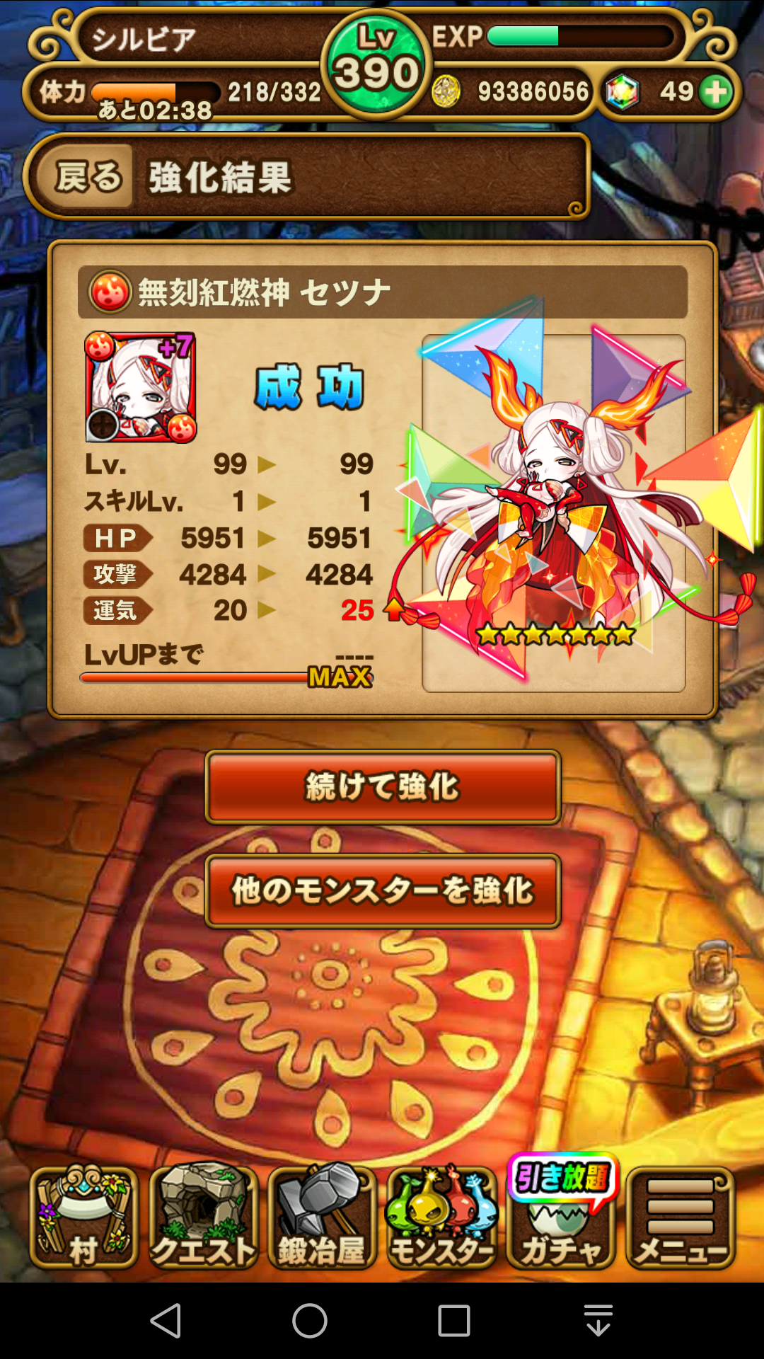 Sクラスは、優位属性ダンジョンには常に使えるので ゲットできれば手放しで喜べる。現段階では最強性能のモンスター。