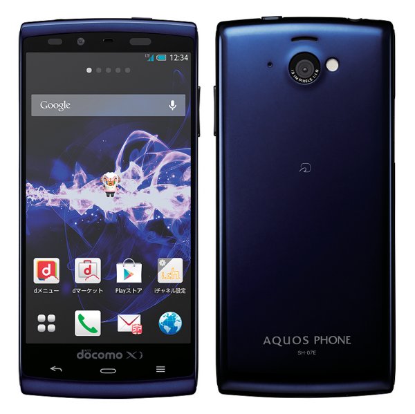 NTTドコモ、2013年夏モデルとなるシャープ製アクオススマートフォン「AQUOS PHONE si SH-07E」。4.3インチディスプレイを採用したコンパクトモデルでガラスインサート成形による「Edge to Edge」設計。2013年6月21日発売。
