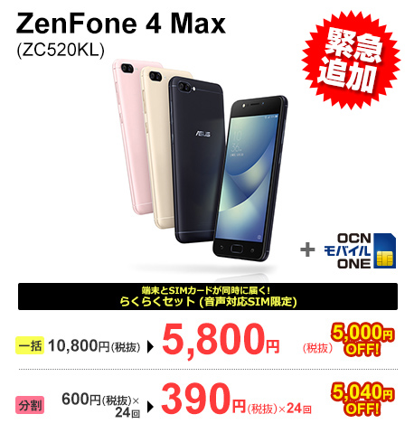 ASUSの「ZenFone 4」シリーズもかなりお安くなっています。