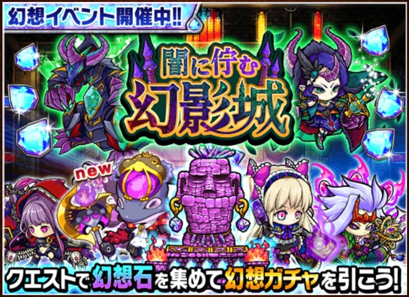 ※ イベント開催期間(ダンジョンプレイ期間)と幻想ガチャ開催期間(ガチャを回せる期間)が異なっており、イベント終了後もしばらくは、幻想ガチャを回せるので 忘れずに集めた幻想石は消費しましょう。