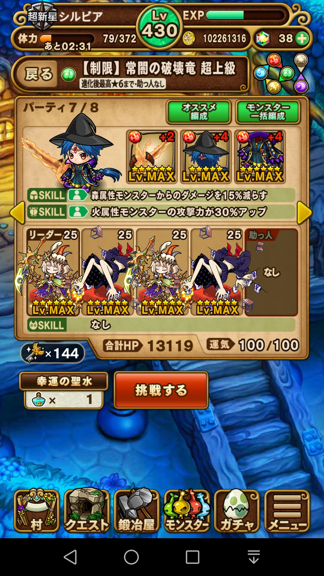 進化後★6まで+助っ人なしの制限の為、なかなか楽なPTが組めない。