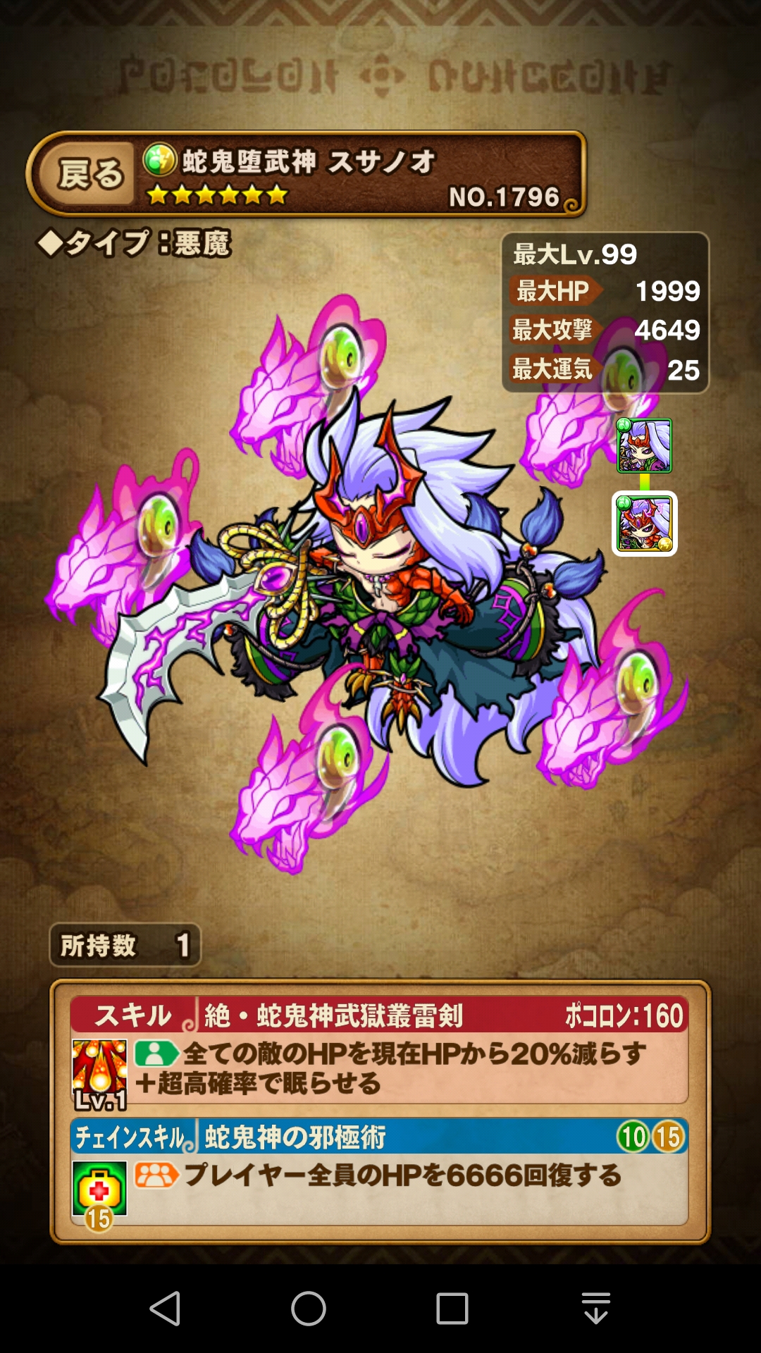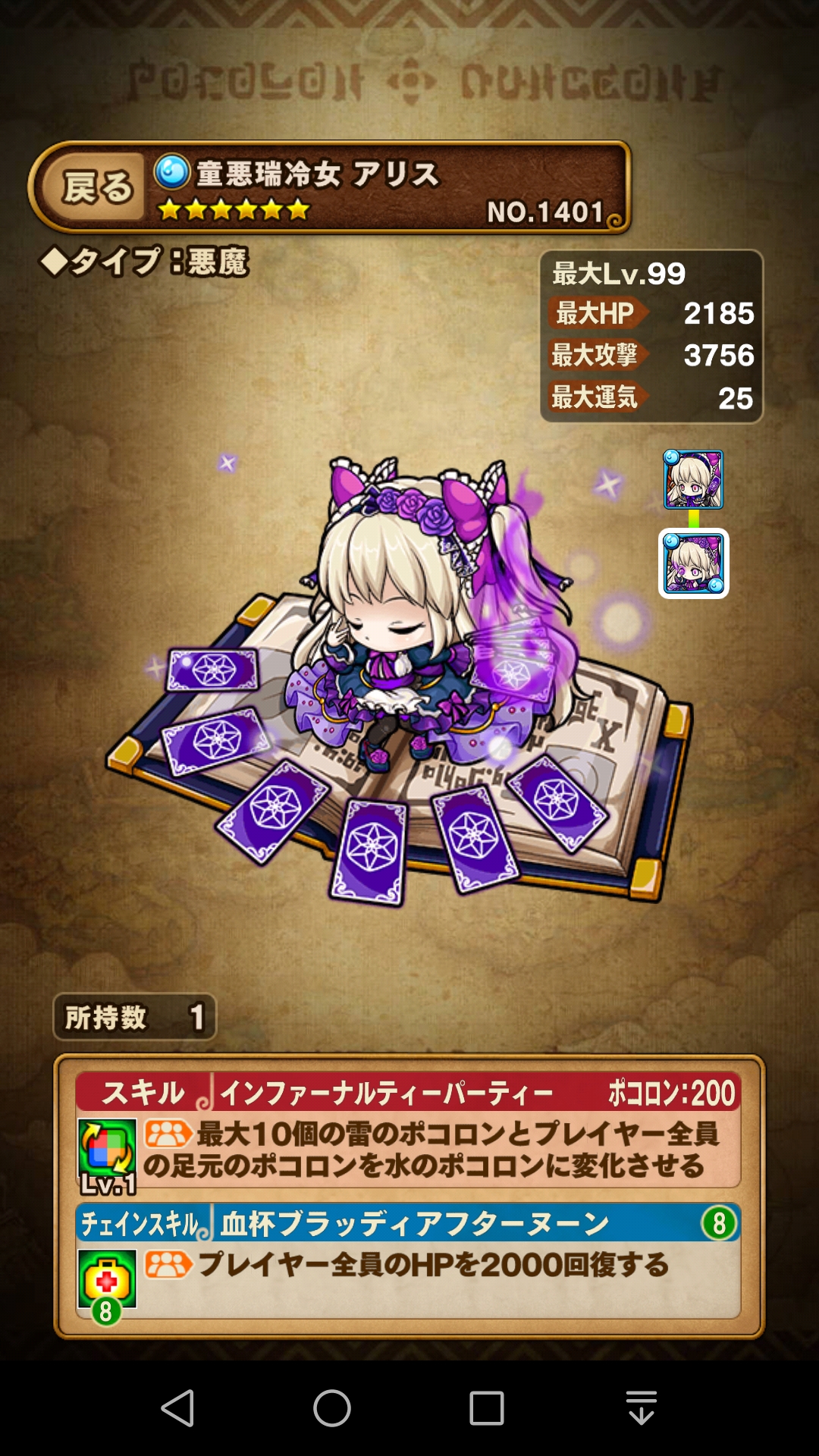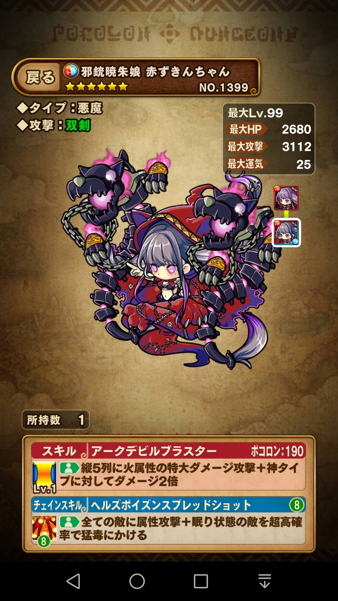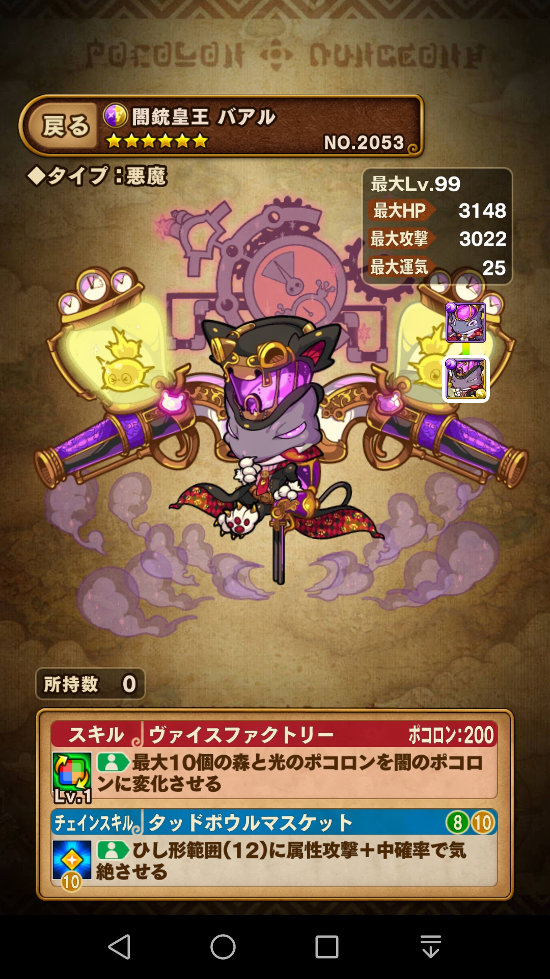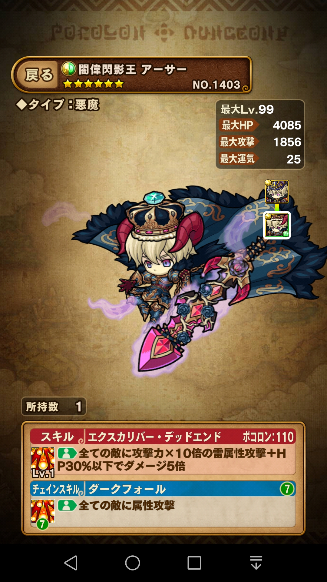 そして、この『闇斧王バアル』が、闇の変換スキル持ちという 貴重な存在なので是非運25を作成したい所です。