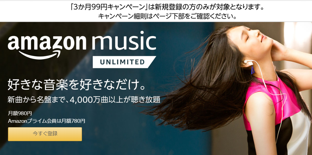 amazon music UNLIMITED 3ヶ月99円で音楽聴き放題。