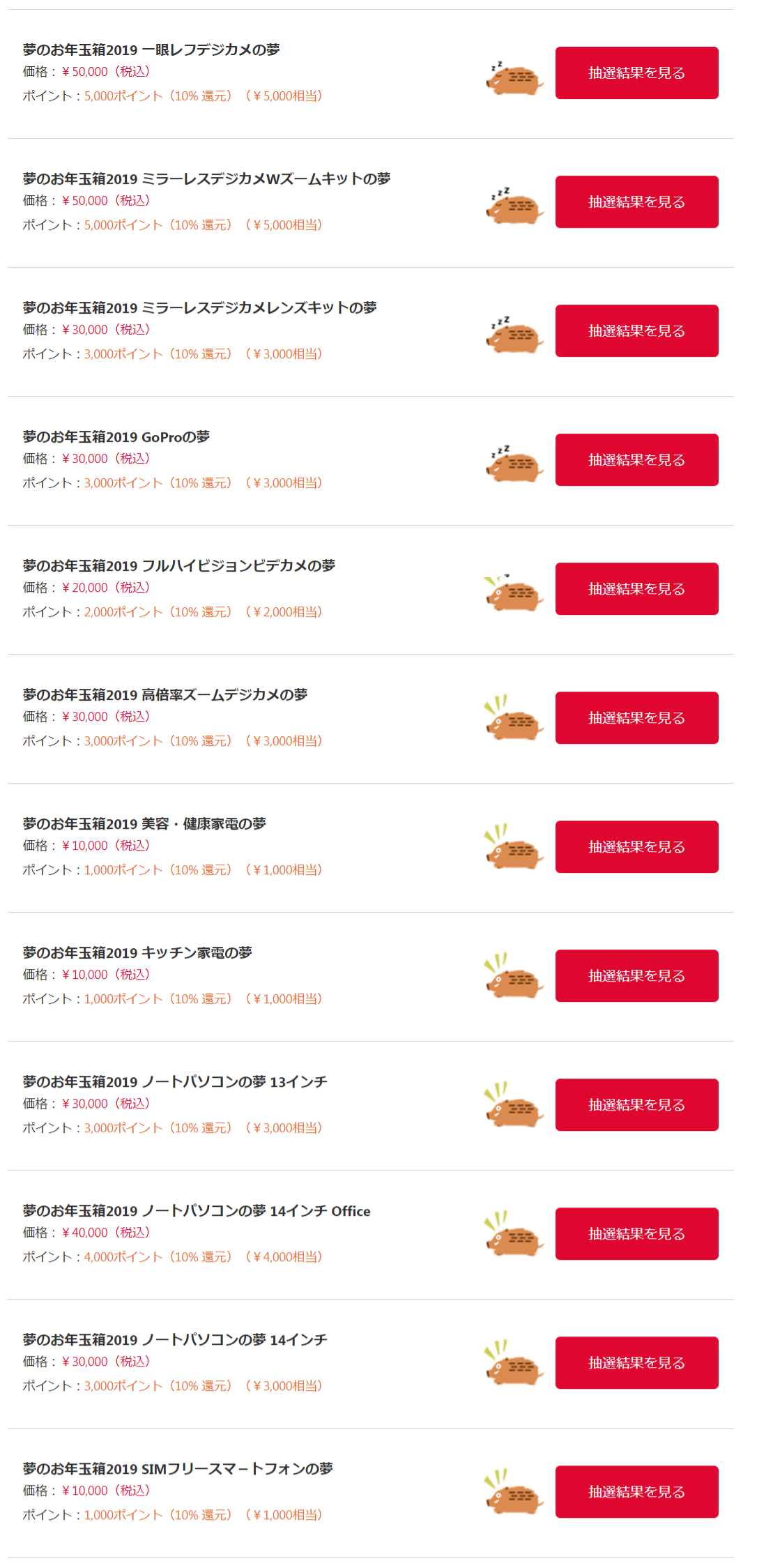 価格:¥30,000(税込)当選倍率 481倍 - 夢のお年玉箱2019 一眼レフデジカメの夢