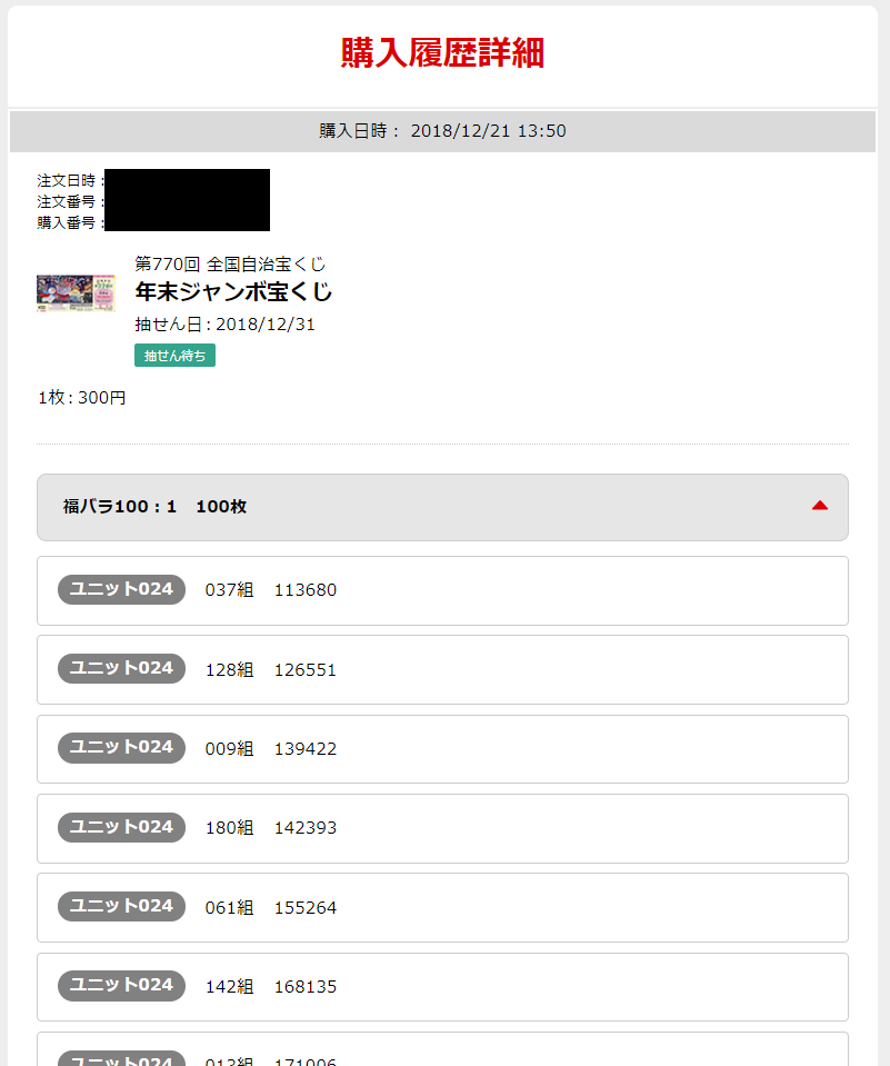 こんな感じで、ちゃんと購入した組と番号も 事前に一覧で確認できます。
