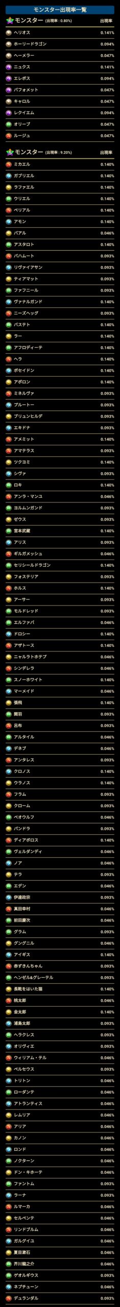 ★6・★5の出現モンスター毎の確率を確認したい方は以下より。