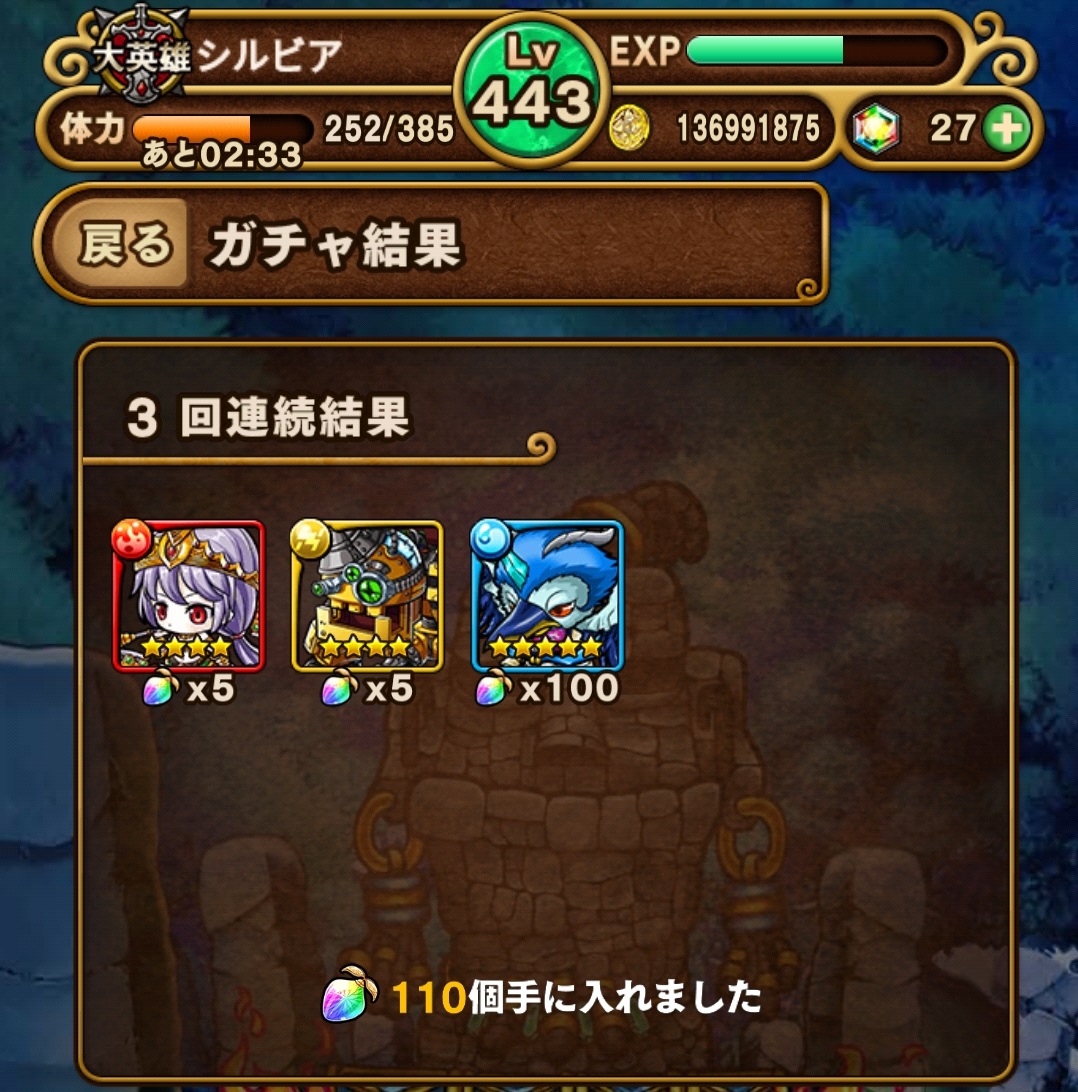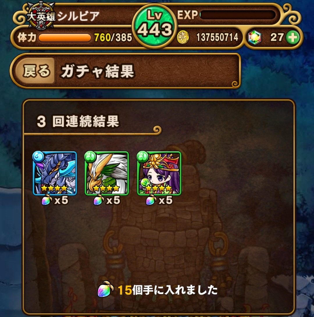 ★5の出現率自体は結構イイ感じなんだけど、どうも使えないモンスばかり出てる気がする。