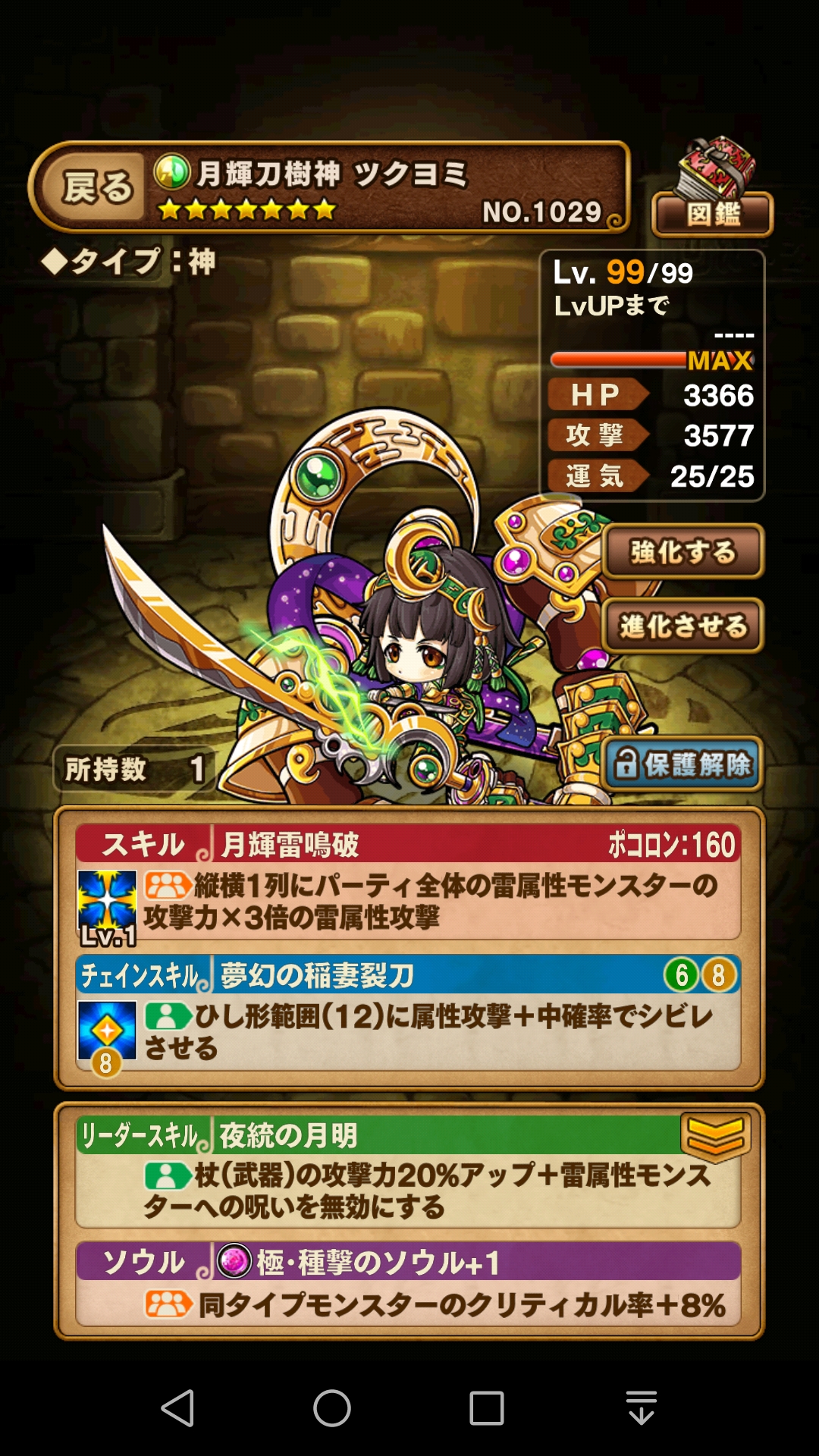 のツクヨミは、呪い無効のリーダースキル目的でたまに使うけど、まぁ 弱モンスの部類だよね。