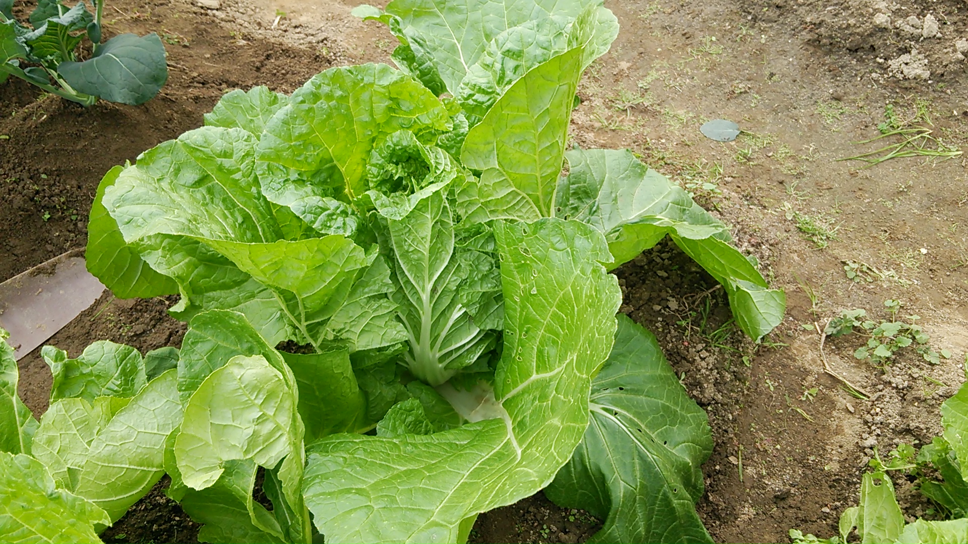 大根収穫の日に、白菜の防虫ネット撤去&追肥をしてきました。