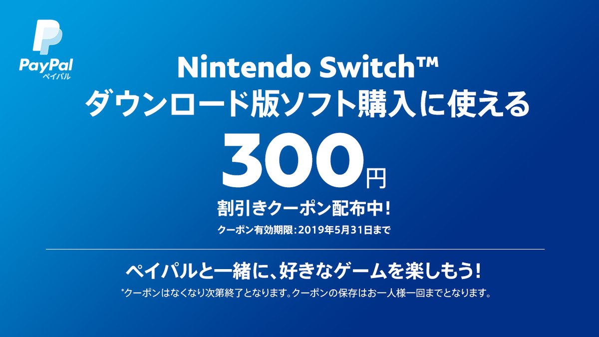 『Nintendo Switch™ ダウンロード版ソフト購入やウォレットチャージにも使えるペイパル決済「300円」割引クーポン』