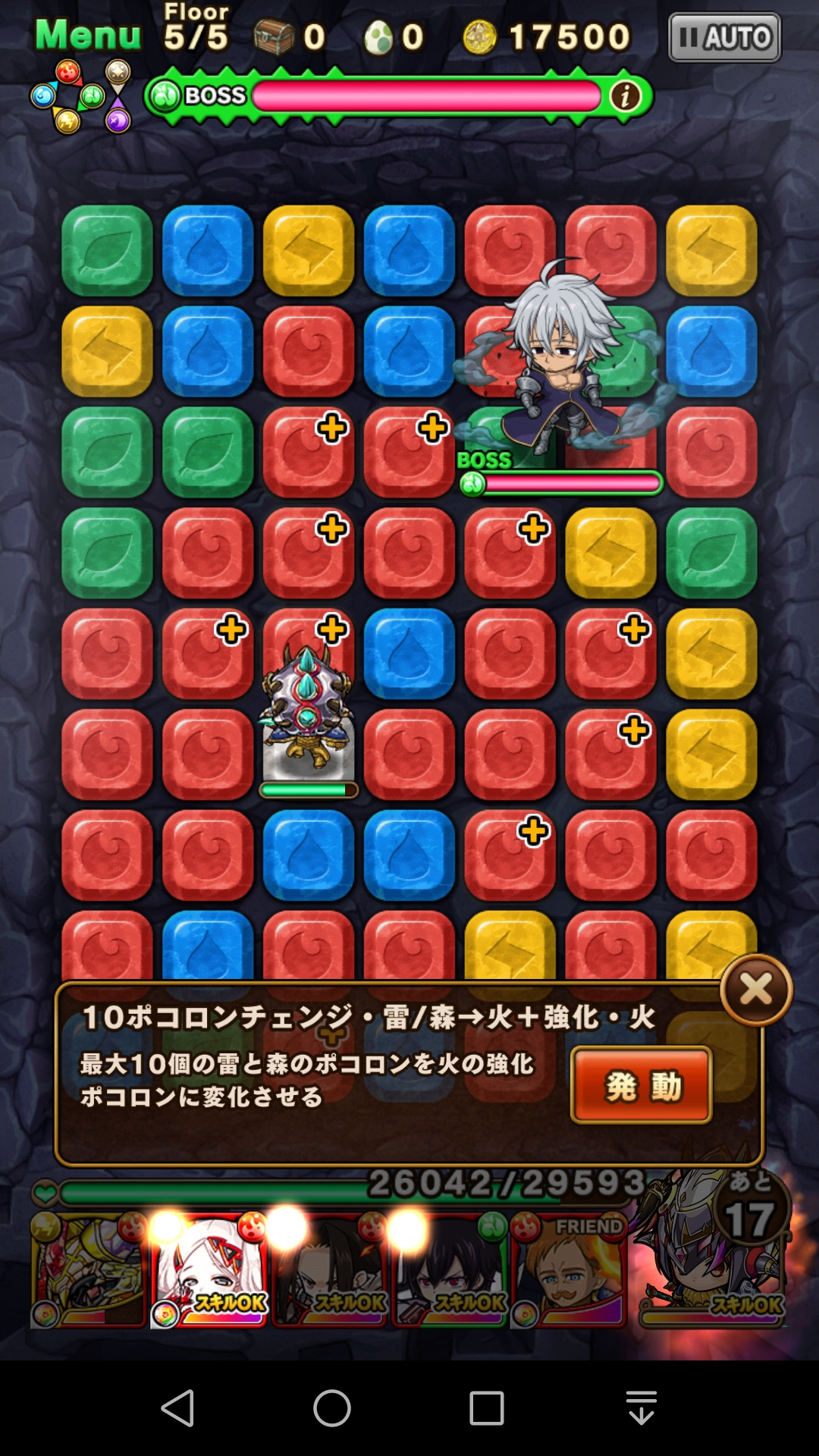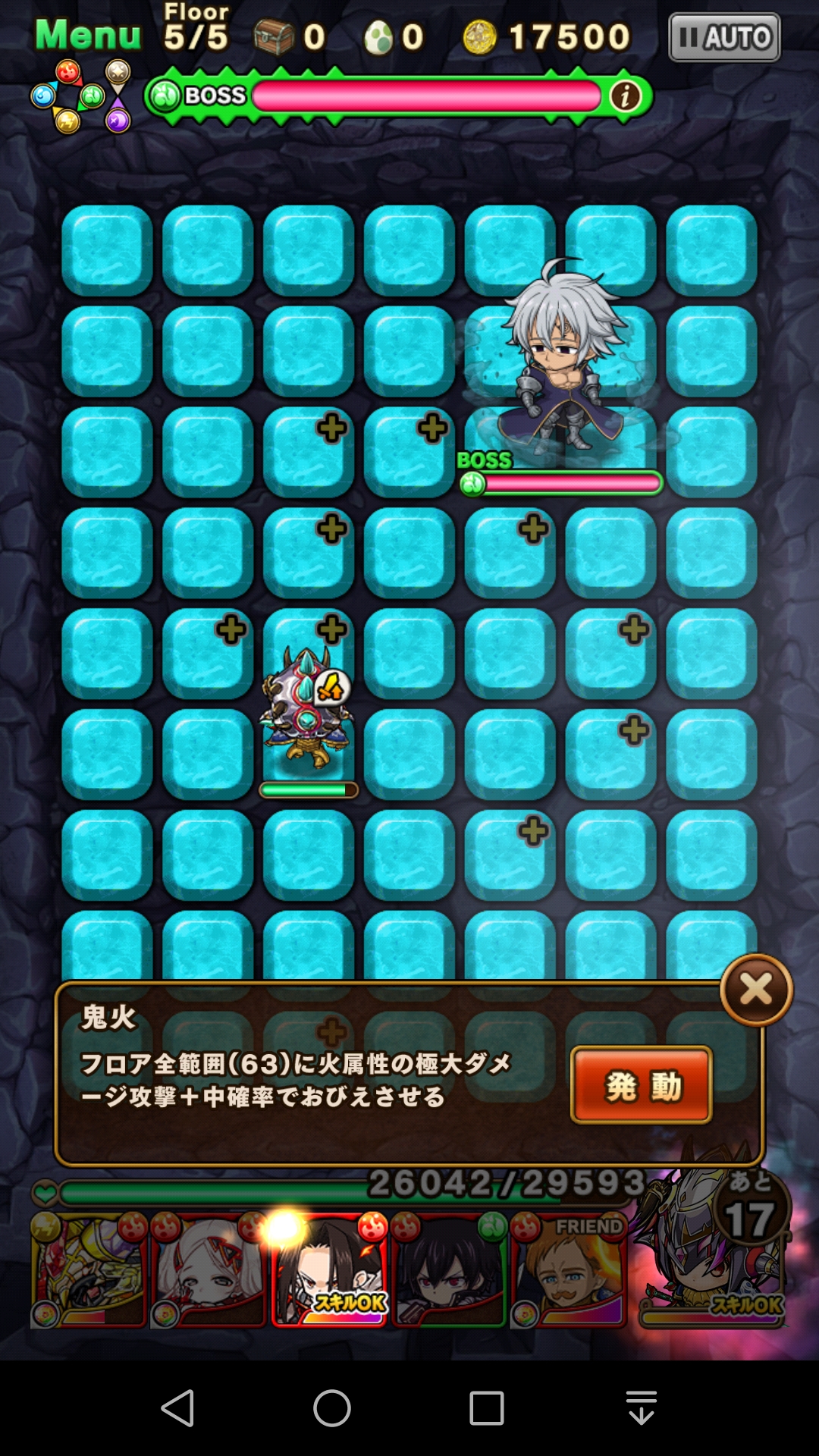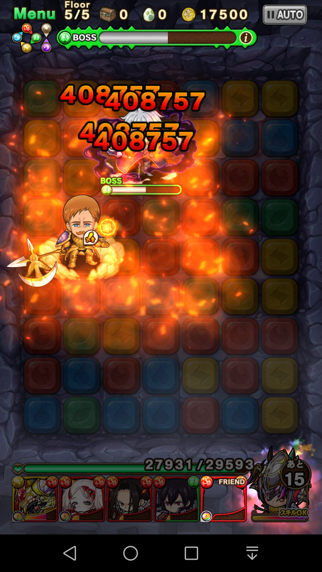 敵が火属性で、意外に体力もあるので エスカノールのスキルで一掃突破が吉。