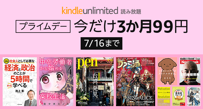 Amazonの電子書籍『Kindle Unlimited』で3ヶ月99円セールを開催中!!【2019/7/16まで】