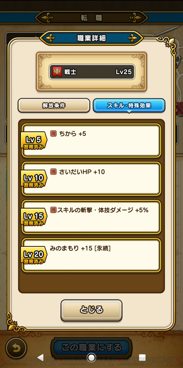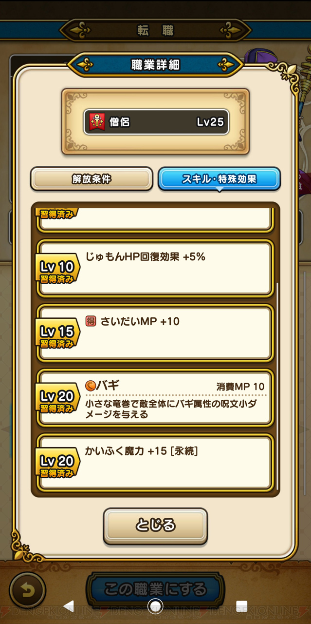 公式サイトの『おさらい冒険記』では解説してないのですが 情報収集の段階で「電撃オンライン」の『DQウォーク』記事にて、職業や転職についての記事がありました。