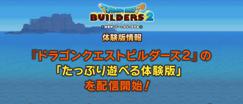 → ドラゴンクエストビルダーズ2「たっぷり遊べる体験版」詳細ページ