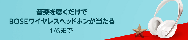 ⇒ Amazon Musicで音楽を聴くだけで、BOSEワイヤレスヘッドホンが当たるチャンス!【20/5/6まで】