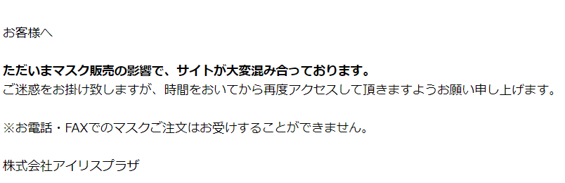 販売開始後に開かないと、販売されているマスクの在庫状況と販売されるマスクがわかりませんのでね。