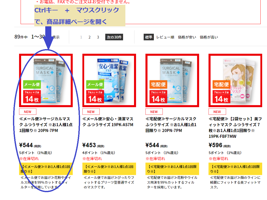 結果として、マスク販売ページに繋がる可能性が飛躍的に上がります。
