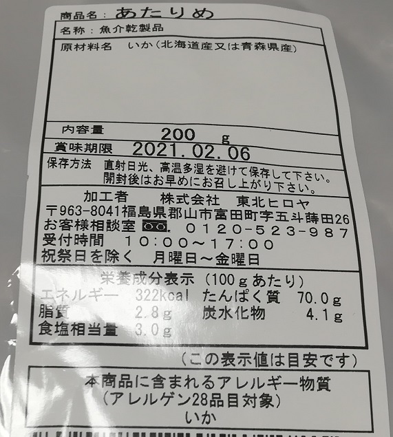 北海道、青森近海で獲れたスルメイカを原材料に、函館で加工・製造した商品なのでちゃんとした『純国産』となっています。