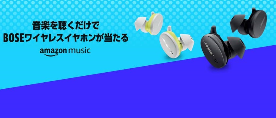 Amazon Musicで音楽を聴くだけでBOSEワイヤレスイヤホンや500円分クーポンが抽選で当たる