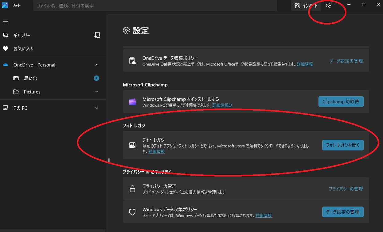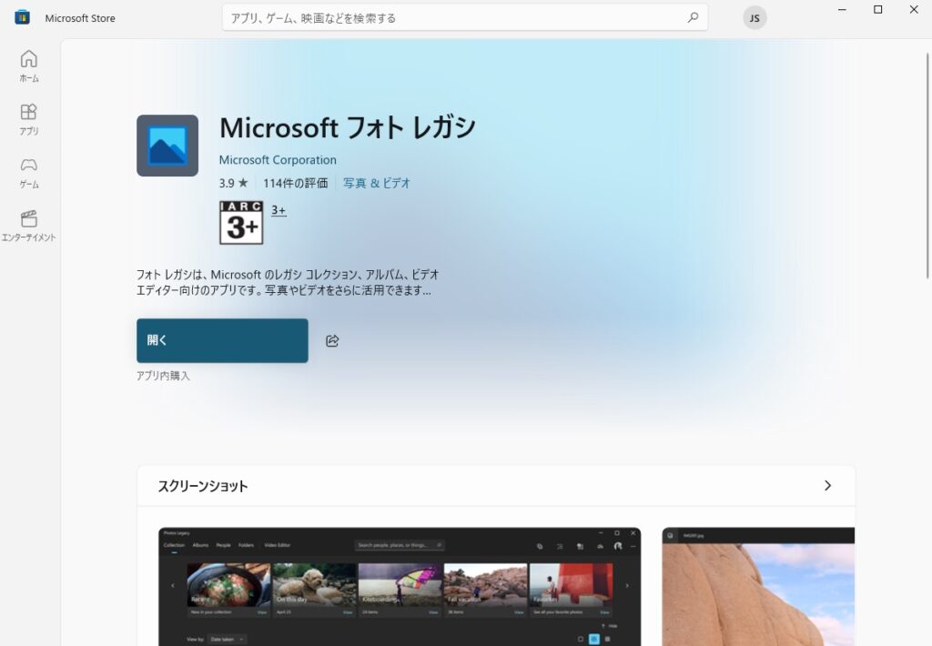 以前のフォトアプリは”フォトレガシ”と呼ばれ、Microsoft Storeで無料でダウンロードできるようになりました」