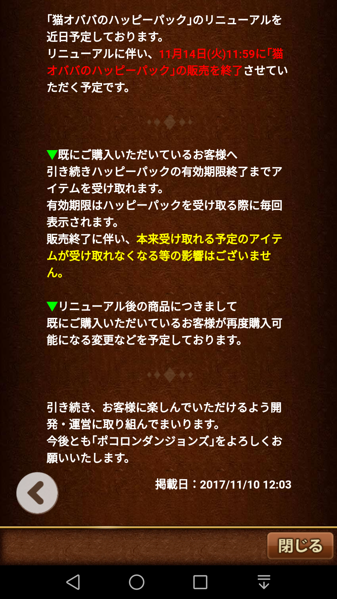 ま、プレイヤーにとっては いい事ずくめですので ゲームを気に入っているなら「猫オババのハッピーパック」は買っておいて損はないアイテム。